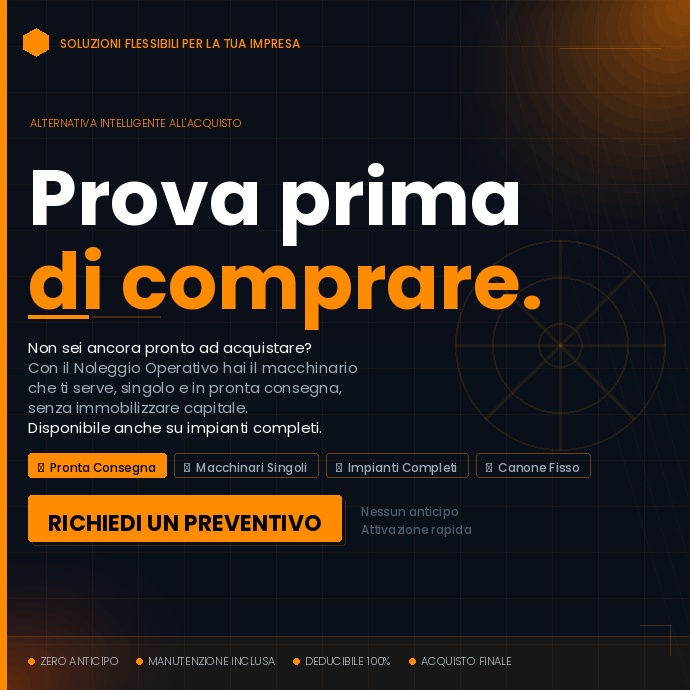 Con oltre vent’anni di esperienza nel settore, la nostra azienda è leader nella produzione di macchinari industriali. Offriamo una vasta gamma di macchinari adatti a piccole, medie e grandi produzioni, garantendo soluzioni personalizzate per ogni esigenza. Siamo specializzati nello studio e nella produzione di macchine su misura, inclusi impianti non standard, per soddisfare le specifiche necessità dei nostri clienti.